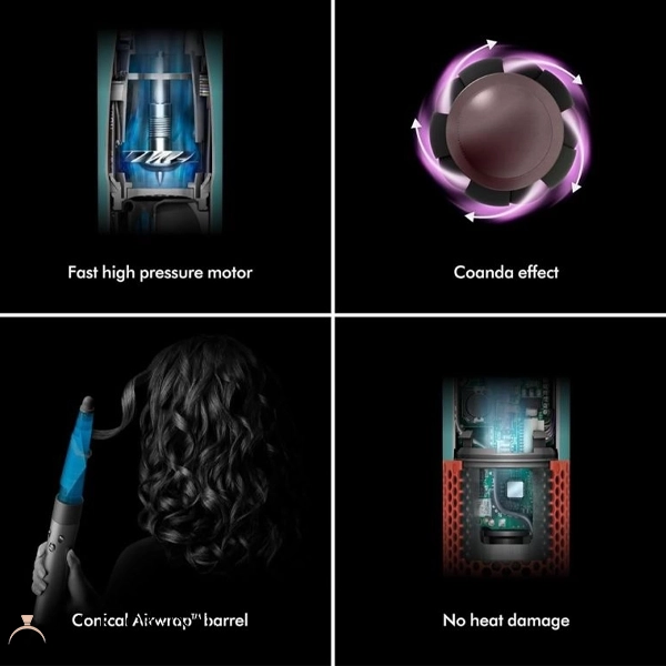 ویژگی برجسته دایسون ایررپ HS08، استفاده از فناوری هوشمند کواندا (Coanda effect) است. این فناوری با ایجاد یک جریان هوای پرفشار و کنترلشده، موها را به صورت خودکار به دور سری دستگاه میپیچد و حالت میدهد. این فرآیند باعث میشود که موها بدون نیاز به گرمای شدید و آسیبرسان حالت بگیرند.