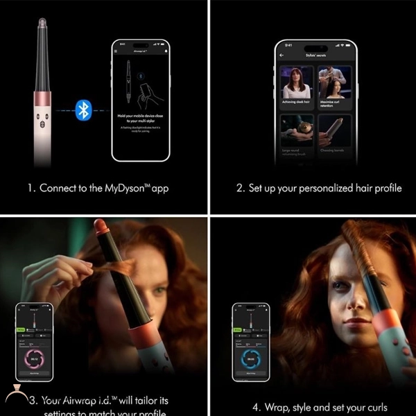 - اتصال به بلوتوث و اپلیکیشن MyDyson: این ویژگی به شما امکان میدهد تا با اتصال دستگاه به گوشی هوشمند خود، یک پروفایل موی شخصی ایجاد کرده و توصیههای حالتدهی متناسب با نوع و طول موی خود دریافت کنید. این امر فرآیند حالتدهی را بسیار سادهتر و دقیقتر میکند.
