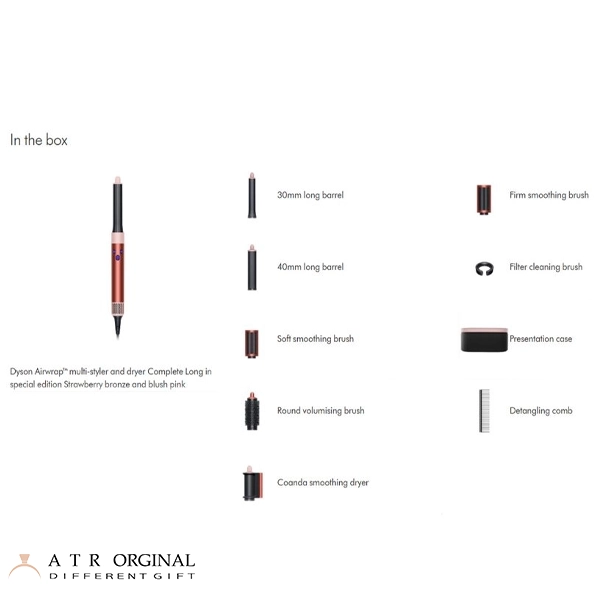 • سری‌های فرکننده Airwrap (در دو سایز 30 و 40 میلی‌متری): این سری‌ها با تولید جریان هوا در جهت عقربه‌های ساعت و خلاف آن، به صورت خودکار موها را به دور خود می‌پیچند و فر یا موج‌هایی زیبا و ماندگار ایجاد می‌کنند.