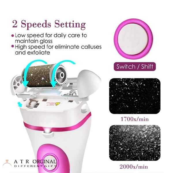 این سنگ پای برقی مجهز به غلطکهای ساینده با کیفیت بالا است. این غلطکها به طور موثر و در عین حال ملایم، پوستهای خشن و مرده را از بین میبرند، بدون اینکه به پوست سالم آسیبی وارد کنند. قابلیت تعویض غلطکها نیز از دیگر مزایای این مدل است که امکان استفاده طولانیمدت از دستگاه را فراهم میکند. معمولاً انواع مختلفی از غلطکها با زبریهای متفاوت (برای پوستهای حساس تا بسیار خشن) همراه با دستگاه عرضه میشوند یا به صورت جداگانه قابل تهیه هستند.