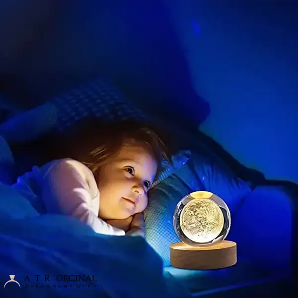 این چراغ خواب از یک گوی کریستالی به قطر 6 سانتی متر تشکیل شده که داخل آن طرح کره ماه به صورت کامل و سه بعدی قرار گرفته و زمانی که بر روی پایه قرار می گیرد از بخش زیرین آن نور تابیده می شود و بسیار زیبا می درخشد و تصویر ماه به صورت واضح دیده می شود. این طرح گوی کریستالی را می توانید به کسانی که به ماه علاقه زیادی دارند هدیه دهید و آن ها را خوشحال کنید.