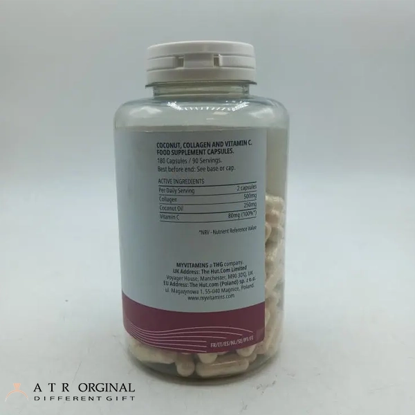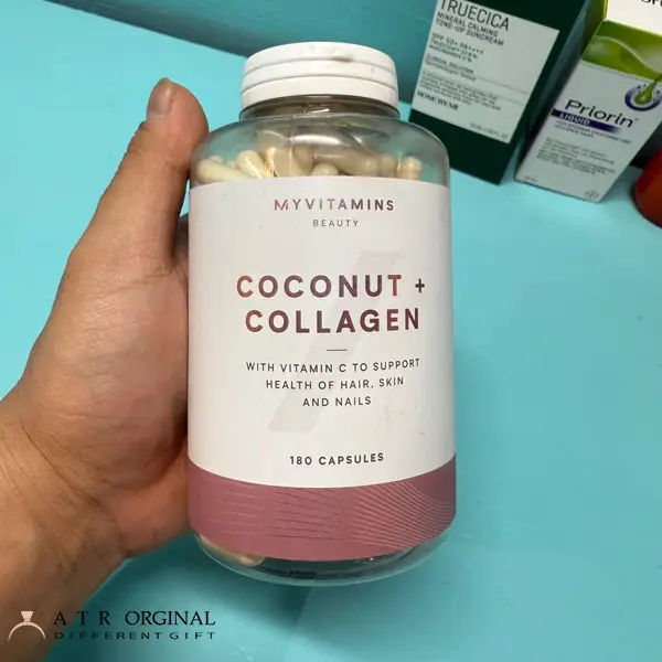 قرص کوکونات کلاژن مای ویتامینز (Myvitamins Coconut & Collagen) یک مکمل غذایی است که برای حمایت از سلامت پوست، مو و ناخن طراحی شده است. این محصول ترکیبی از کلاژن هیدرولیز شده، روغن نارگیل و ویتامین C است. در ادامه به توضیح ویژگی‌های آن می‌پردازیم: