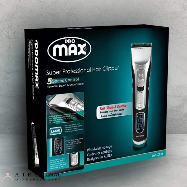 ماشین اصلاح سر و صورت پرومکس مدل 2235، یک دستگاه اصلاح موی حرفه‌ای با طراحی مدرن و عملکرد قدرتمند است که برای اصلاحی دقیق، سریع و راحت طراحی شده است. این ماشین اصلاح با بهره‌گیری از فناوری‌های نوین و ویژگی‌های کاربردی، تجربه‌ای لذت‌بخش از اصلاح مو را برای شما فراهم می‌کند. تیغه‌های این ماشین اصلاح از جنس فولاد ضد زنگ ساخته شده‌اند که بسیار تیز و بادوام هستند. این تیغه‌ها به شما امکان می‌دهند تا موهای خود را به طور یکنواخت و بدون کشیدگی اصلاح کنید. ماشين اصلاح سر و صورت پرومکس مدل 2235 دارای قابلیت تنظیم طول اصلاح است. با استفاده از شانه‌های مختلف و اهرم تنظیم طول اصلاح، می‌توانید طول موهای خود را به دلخواه تنظیم کنید. به علاوه این دستگاه دارای 2 عدد شانه اصلاح در 4 سایز و همینطور دارای تنظیم تیغه در 4 سایز می باشد که این ویژگی به شما امکان می‌دهد تا انواع مدل‌های مو را ایجاد کنید. این دستگاه قابلیت تنظیم سرعت موتور را از 5 الی 7 rpm دارد. این ماشین اصلاح هم با برق خانگی (با سیم) و هم با باتری قابل شارژ (بی‌سیم) قابل استفاده است. این ویژگی به شما آزادی عمل بیشتری در هنگام اصلاح می‌دهد. باتری لیتیوم یونی با ظرفیت بالا، امکان استفاده طولانی مدت از دستگاه را فراهم می‌کند. مدت زمان خروجی شارژ 240 دقیقه است. با یک بار شارژ کامل، می‌توانید مدت طولانی از دستگاه استفاده کنید. طراحی ارگونومیک و خوش‌دست ماشين اصلاح سر و صورت پرومکس مدل 2235، استفاده از آن را آسان و راحت می‌کند. این ویژگی باعث می‌شود که در هنگام استفاده طولانی مدت، دست شما خسته نشود. به علاوه نمایشگر دیجیتال میزان شارژ باتری و سرعت موتور را نشان می‌دهد و به شما کمک می‌کند تا از وضعیت دستگاه مطلع باشید. نکات قابل توجه: