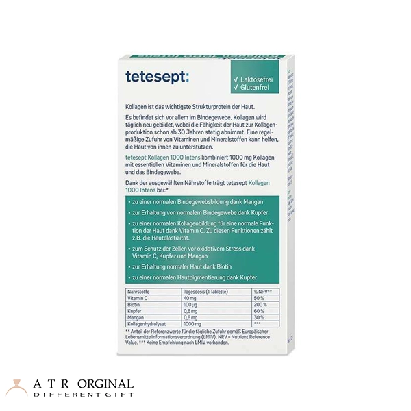ویژگیهای اصلی و ترکیبات کلیدی قرص کلاژن 1000 هزار و بیوتین تتسپت اصل آلمان: