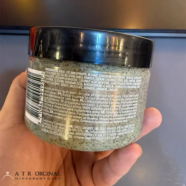 • اسکراب کف سر ترزمه، فاقد سولفات و مناسب برای موهای چرب